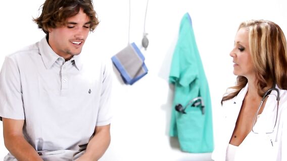 Врачиха осматривает сводных брата и сестру в кабинете на кушетке. Замечает возбуждение и учит их сексу, делясь опытом. Просит девушку отсосать, помогает и трахается вместе с ней.