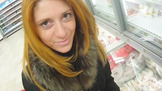 Он встретил её в магазине и решил заняться сексом с этой рыжей русской девушкой. Обаяние и природная харизма парня сделали своё дело, и они устроили быстрый трах в подъезде с задранной юбкой.
