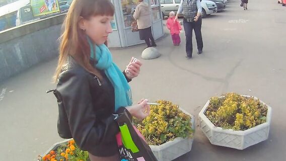 Красивая розочка в руках русского парня нашла новую владелицу, когда его девушка не пришла на свидание. Незнакомка легко согласилась пойти с ним в сауну, и он снял секс с ней от первого лица.
