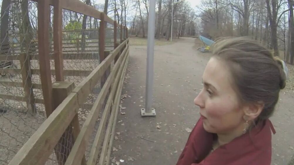 Русская брюнетка, прогуливаясь по парку, встретила обаятельного парня и не смогла ему отказать. Он привел незнакомку в подъезд и вошел твердым членом в попку, потрахав её раком, он кончил внутрь.