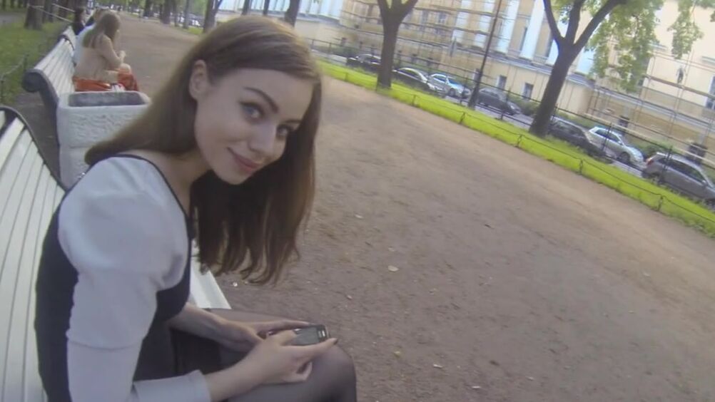 Скучающий русский пикапер со скрытой камерой подкатил к красивой девчонке в парке и, представившись страховым агентом, пригласил её домой. Он быстро развел её на секс и насладился нежной киской.
