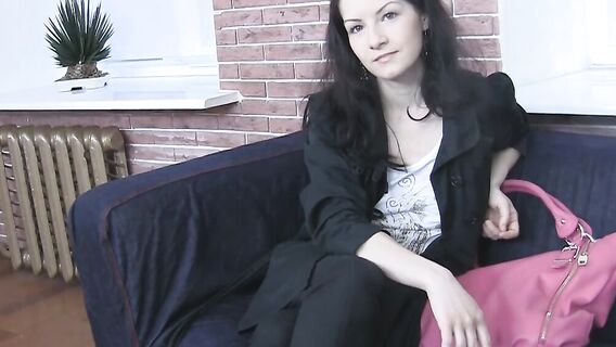 Развеяв сомнения брюнетки, фейковый агент, пригласивший её на кастинг, сделал всё, чтобы она раздвинула ноги. Голая студентка трахается с мужиком на камеру и получает камшот на лобок вместо роли.