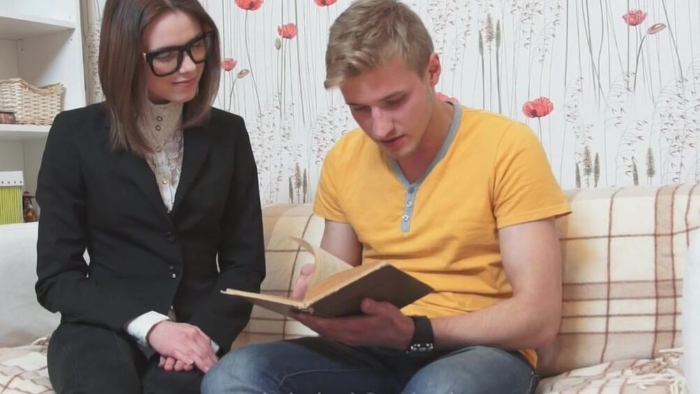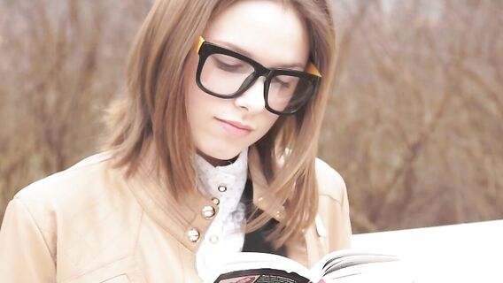 Случайная встреча на улице подарила очкастой студентке классный секс. У её нового знакомого оказался внушительного размера член, который она жадно сосет и трахается, оседлав парня сверху.