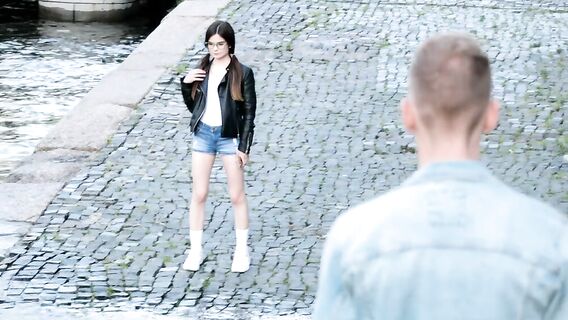 Русский парень увидел из окна длинноволосую худышку и решил познакомиться. Скоро она голая с раздвинутыми ногами в белых носках и кроссовках лежала на его кровати и стонала от интенсивного секса.