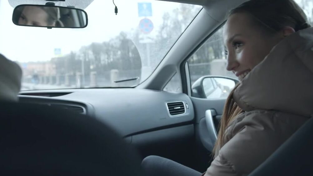 Милая молоденькая девочка студентка оказавшись в машине парня, решила прокатиться и на его стояке. Она наслаждается классным перепихом на большой кровати и глотает сперму после секса.