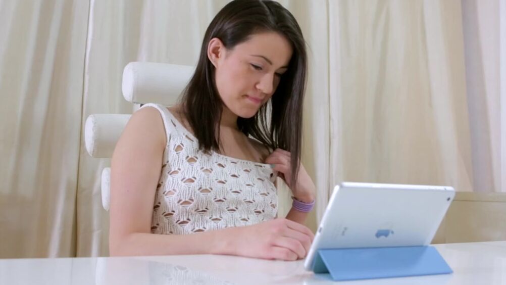 Разговаривая с парнем по видео связи, юная русская девица разделась, но не дала ему посмотреть, как она занимается соло самоудовлетворением свой бритой киски на стуле и позже на столе.